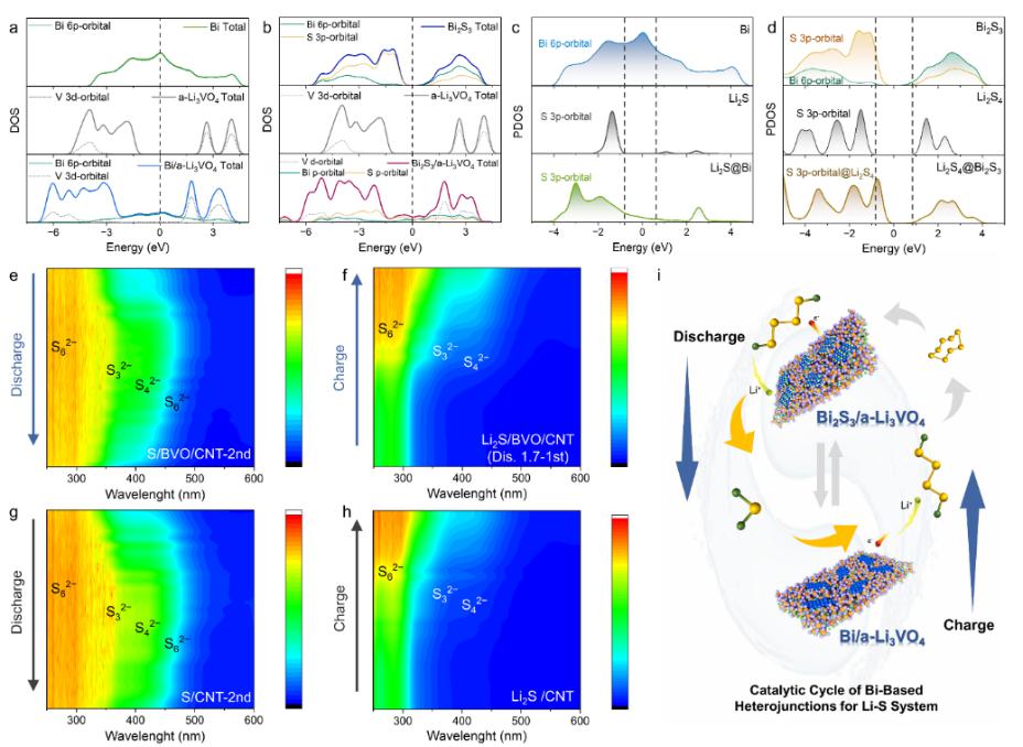 圖1b Bi/a-Li3VO4和Bi2S3/a-Li3VO4可逆催化循環(huán)體系提升硫正極反應(yīng)動(dòng)力學(xué)機(jī)理分析