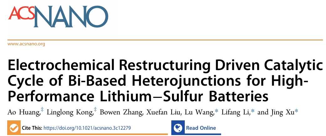 近日,我院研究生黃奧在國際知名期刊《ACS Nano》(中科院一區(qū)TOP,影響因子17.1)在線發(fā)表了題為“Electrochemical Restructuring Driven Catalytic Cycle of Bi-Based Heterojunctions for High-Performance Lithium–Sulfur Batteries”的最新研究成果,林學(xué)院孔令龍副教授為本文共同第一作者,王璐副教授、李麗芳教授、徐靜教授為本文共同通訊作者,山東農(nóng)業(yè)大學(xué)為本論文唯一完成單位。